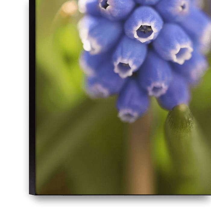 Blauwe druifje, prachtig gezicht wanneer ze gaan bloeien. Mooie zachte achtergrond in het het lentezonnetje.