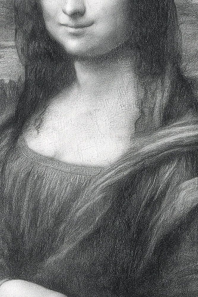 Das Kunstwerk ist im Bleistiftstil ausgeführt, mit charakteristischen Strichen in Grautönen.