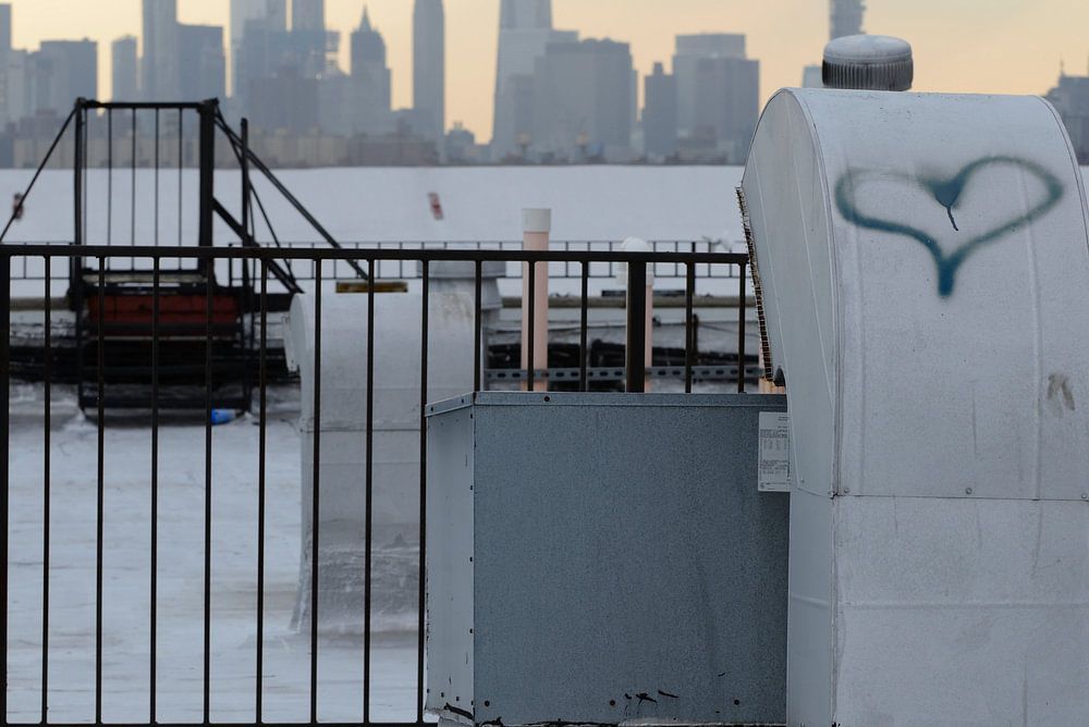 Blick auf Manhattan von einer Dachterrasse in Brooklyn New York.