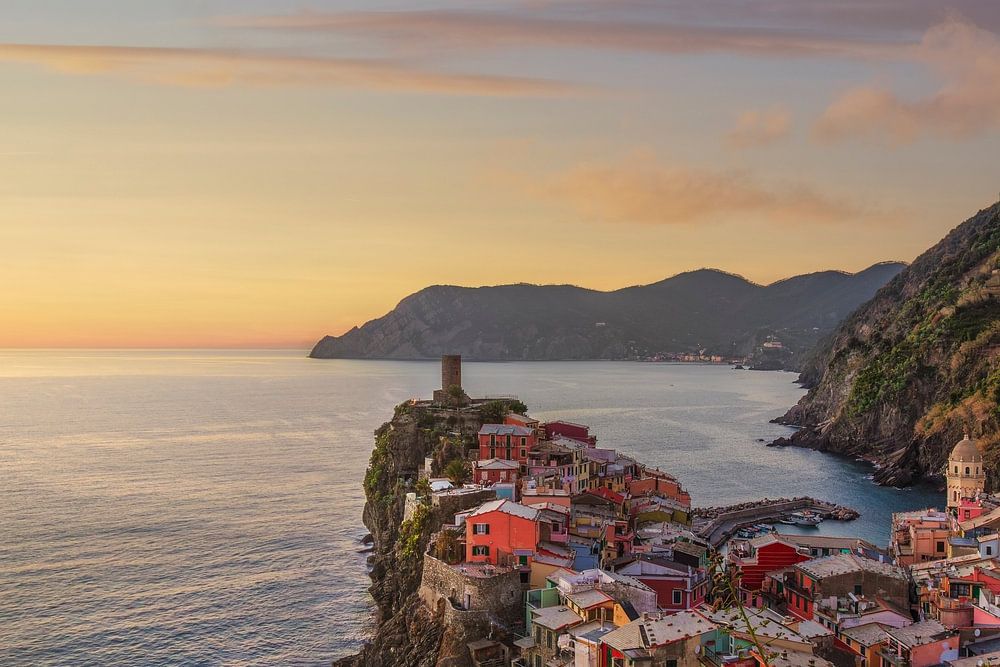 Das alte Fischerdorf zeigt die traditionelle italienische Architektur vor einer dramatischen Küstenkulisse.