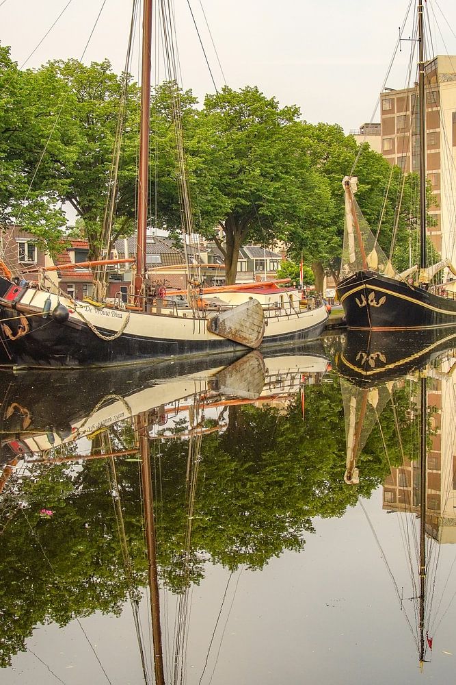 Leiden ist bekannt für seine vielen authentischen Straßen, in denen man hinter jeder Ecke einen Blick in die Vergangenheit werfen kann. Die vielen Grachtenhäuser, die Grachten mit den vielen Brücken und die vielen Straßen mit dem alten Kopfsteinpflaster. Leiden ist eine schöne Stadt! Schiff auf der Meelfabriek