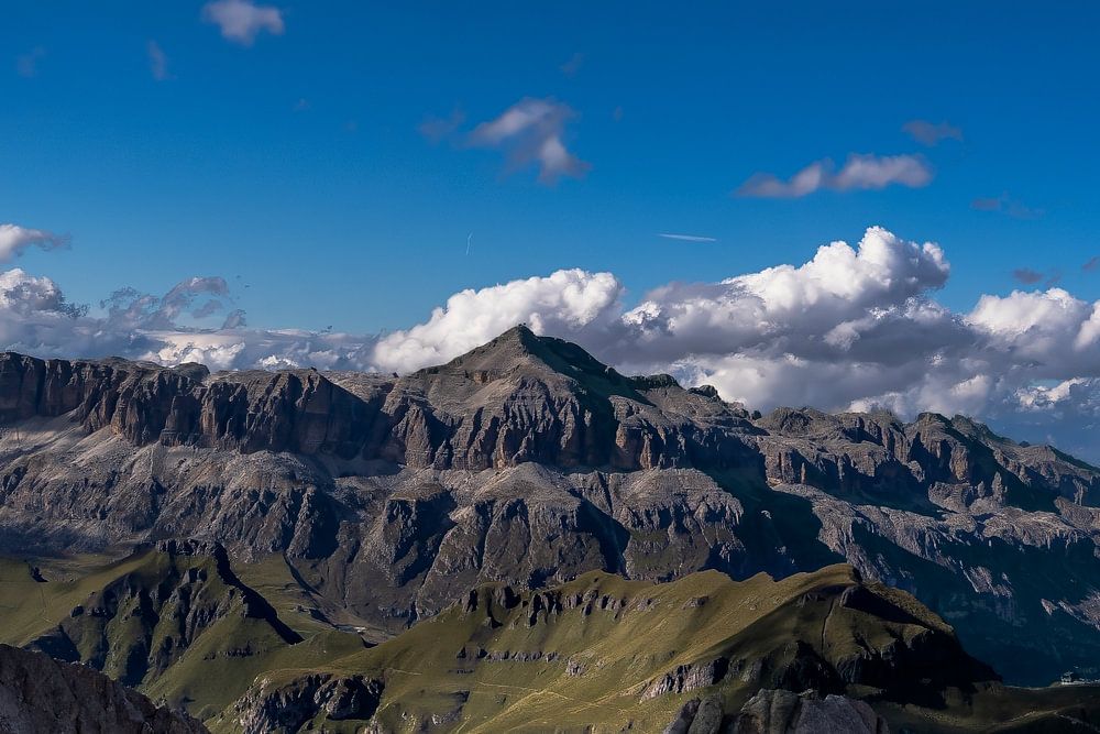 Von einem der vielen Aussichtspunkte in den Dolomiten eröffnet sich ein atemberaubender Blick auf die Marmolada, den höchsten Berg dieses majestätischen Massivs. Mit ihren beeindruckenden 3.343 Metern ragt die Marmolada wie ein Riese aus der Landschaft, oft gekrönt von einem gleißend weißen Gletscher - dem Ghiacciaio della Marmolada - der im Sonnenlicht wie Silber funkelt.