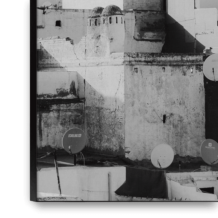 Bestelle das Foto Blick auf die Moschee von Tétouan: schwarz und weiß von Karibu Fotografie als Reproduktion auf Leinwand, Alu-Dibond, als Poster, Fototapete oder Acrylglasbild.
