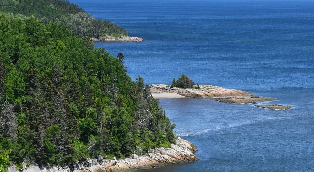 Blick auf die Ostküste des Saint Laurent River, Tadoussac, Quebec, Kanada