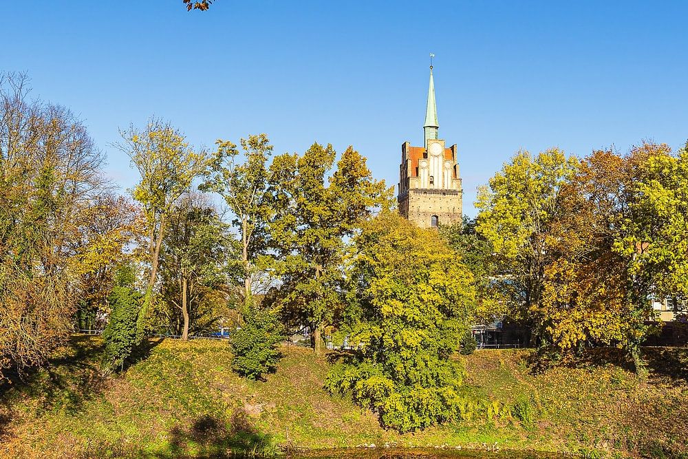 Blick auf die Teufelskuhle und das Kröpeliner Tor in der Hansestadt Rostock im Herbst.