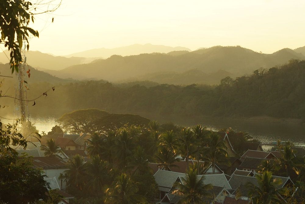 Ein schöner Blick auf die Stadt Luang Prabang in Laos bei Sonnenuntergang.