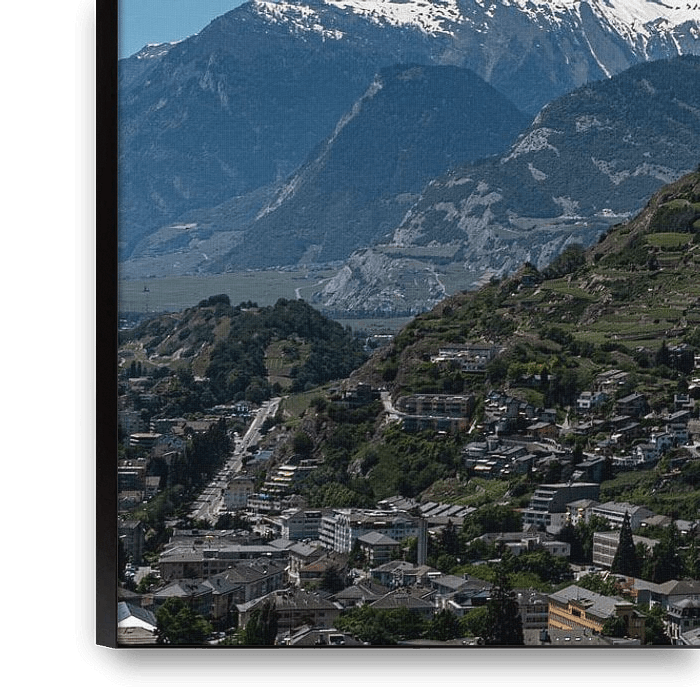 Das Foto wurde von der Basilique de Valère aus aufgenommen, wo Sie einen weiten Blick über Zion mit den wunderschönen Bergen im Hintergrund haben.
