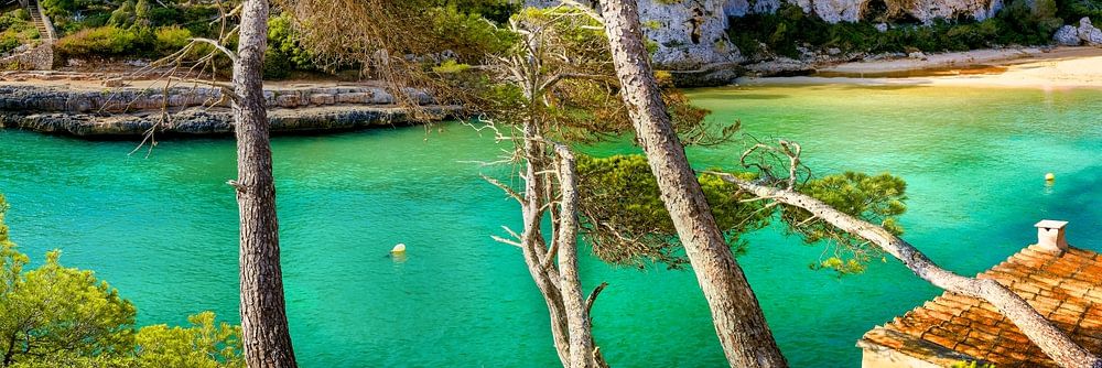 Morgenpanorama an der schönen Bucht Cala Llombards bei Santanyi im Sommer auf der spanischen Insel Mallorca im Mittelmeer.