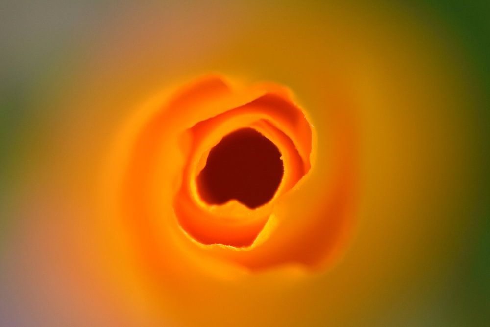 Deze bloem stond prachtig te bloeien in mijn tuin. Ik hou van verschillende stijlen, maar vind het ook erg leuk om met een beperkte scherptediepte te werken. Je hebt dan weinig scherpte en een wat waziger geheel. Dit soort foto's maak ik door of mijn diafragma open te zetten of mijn vintage lens te gebruiken. Dit is een analoge lens die ik op mijn digitale spiegelreflexcamera gebruik. Je krijgt hiermee een bijzonder effect, wat de foto wat specialer maakt. Bij deze foto word je naar de opening van de bloem getrokken en lost de bloem naar de randen toe als het ware op. De oranje bloem maakt deze plaat heel vrolijk, dus wilt u zomer in huis, bestel dan deze foto voor aan de wand!