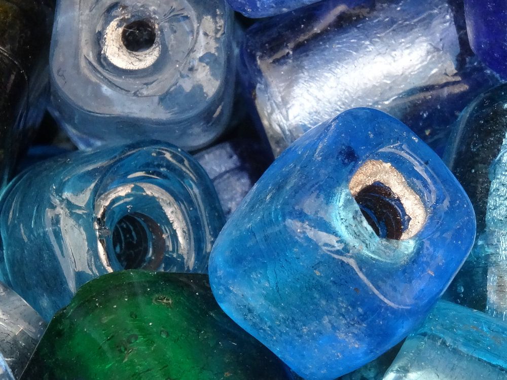 In een kraampje op de markt in Bretagne kwam ik deze prachtige blauwe kralen tegen. De kleuren weerspiegelen de zee, die alom tegenwoordig is in deze mooie Franse regio.