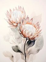 Lassen Sie Ihr Interieur mit "Blossoming Elegance" erblühen. Dieses zarte Kunstwerk mit seinen weichen Pinselstrichen und eleganten Farbtönen zeigt die Protea in ihrer ganzen Pracht. Der sanfte Übergang von Weiß zu Rosa und die zart gezeichneten Blütenknospen im Hintergrund machen es zu einer perfekten Ergänzung für eine friedliche und…
