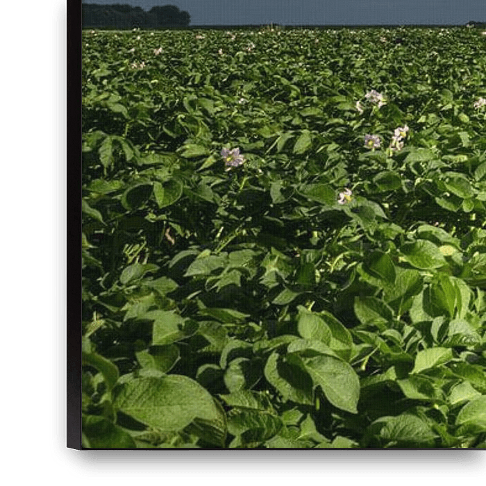 Blühende Kartoffelpflanzen in der Groninger Landschaft.