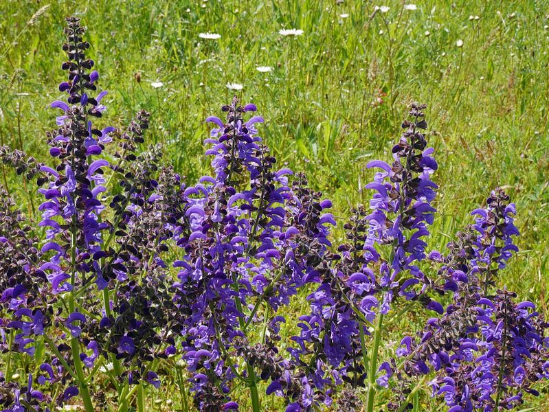 Salvia in einer angesäten Blumenwiese. Eine schöne blühende Pflanze. Nicht wirklich einheimisch, aber mit ein wenig Hilfe von uns funktioniert es sehr gut.