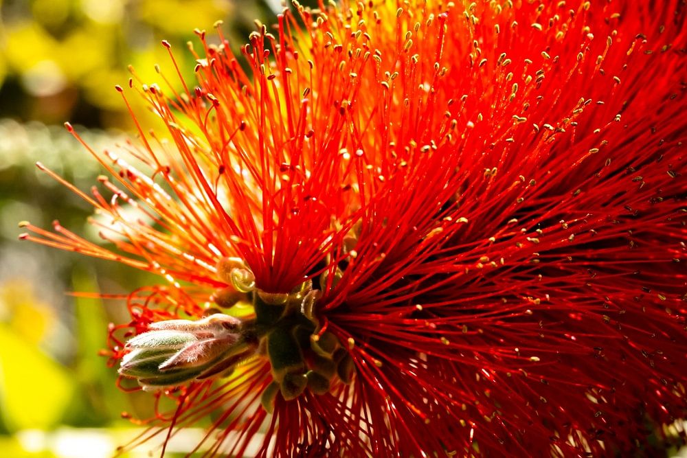 rote wunderschöne Blüte kaminroter Zylinderputzer Callistemon citrinus