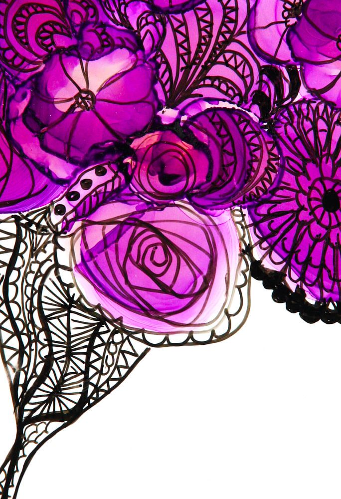 Seit einigen Jahren experimentieren wir mit Acrylfarbe und verschiedenen Techniken. Mit dieser Technik erhalten Sie die schönsten Designs, weil Sie auch jede beliebige Farbe kombinieren können. Seit kurzem arbeite ich auch mit Tinte, und ich konnte auch schöne Fotos von diesen Werken machen.