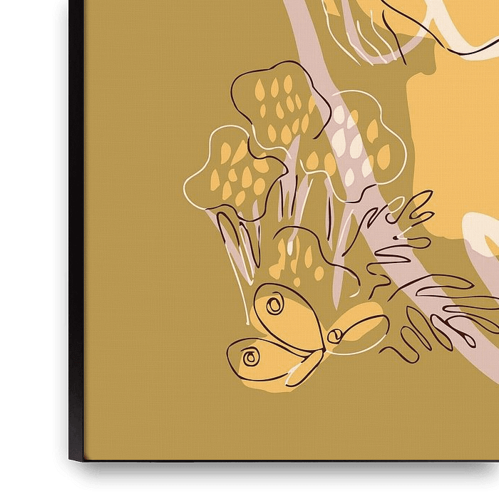 Bestelle dieses Blumen-Wandbild Blumen Mädchen auf Ockergelb von Mad Dog Art als Reproduktion auf Leinwand, Alu-Dibond, als Poster, Fototapete oder Acrylglasbild.