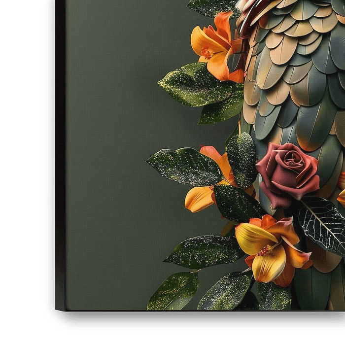 Bestelle dieses Blumen-Wandbild Blumen Papagei von But First Framing als Reproduktion auf Leinwand, Alu-Dibond, als Poster, Fototapete oder Acrylglasbild.