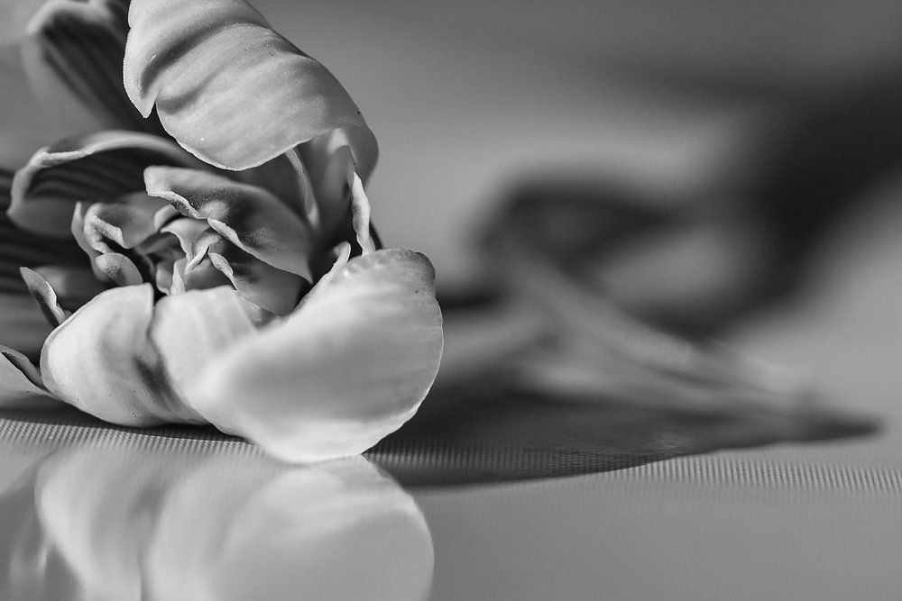 Eine Makroaufnahme einer Frühlingsblume, des Schneeglöckchens. Ich habe ein Makroobjektiv und ein Stativ verwendet. Die Farbe wurde in Schwarz-Weiß umgewandelt.