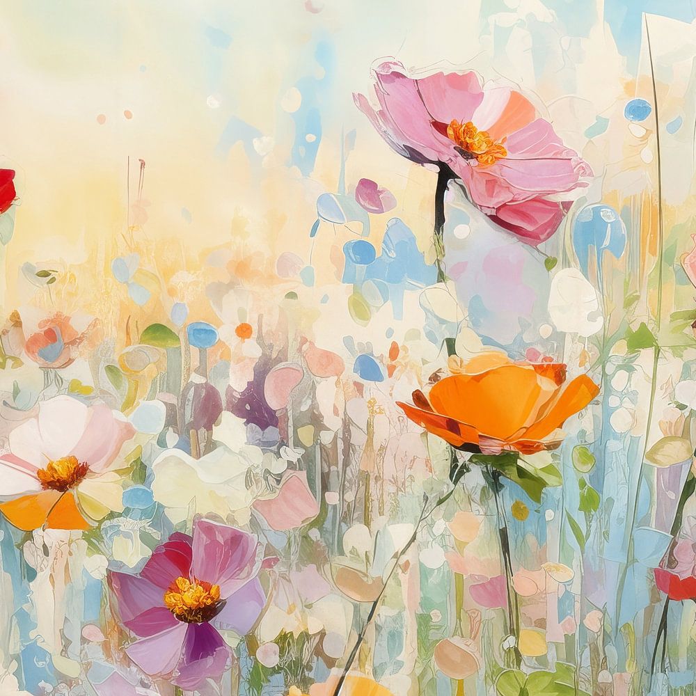 Blumen im Monet-Stil | Blumenfeld Impressionismus - Blumenimpressionismus Gemälde Blumen