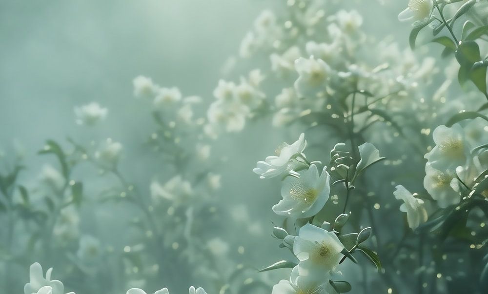 Blumen im Nebelschleier