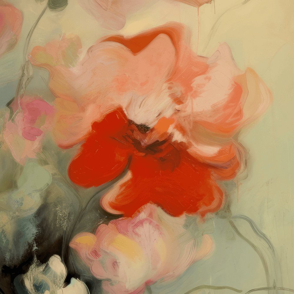 Blumen in Pastellfarben. Diese Blumen verschönern Ihr Zuhause und dennoch müssen Sie sie nie gießen - ideal! Dieses Werk hat eine weiche, poetische Note.