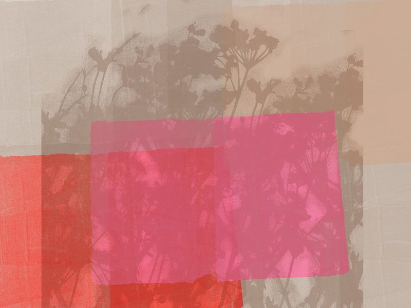 Blumen in Taupe auf Neonpink und Rot von Dina Dankers
