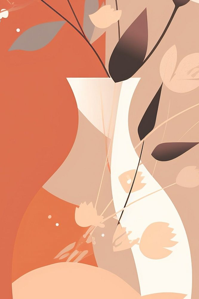 Blumen in Vase | Minimalistisches Stillleben - Dieses stilisierte Stillleben zeigt Blumen in einer eleganten Vase, wobei die Farbe Peach Fuzz eine warme Atmosphäre schafft. Die klaren Linien und minimalistischen Formen verleihen dem Werk eine moderne Ausstrahlung, während die weichen Farbübergänge für Tiefe sorgen.