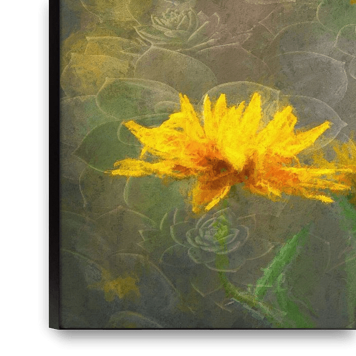Eine digitale Nachbearbeitung von Blumen und Pflanzen, die ich letztes Jahr in einem wunderschönen Wildblumenfeld aufgenommen habe. Es handelt sich um zwei Fotos, die ich zu diesem schönen Ganzen zusammengefügt habe. Ich mochte den malerischen Effekt und es wird sicherlich sehr schön auf einer dunklen Wand aussehen. Ein schönes Werk…