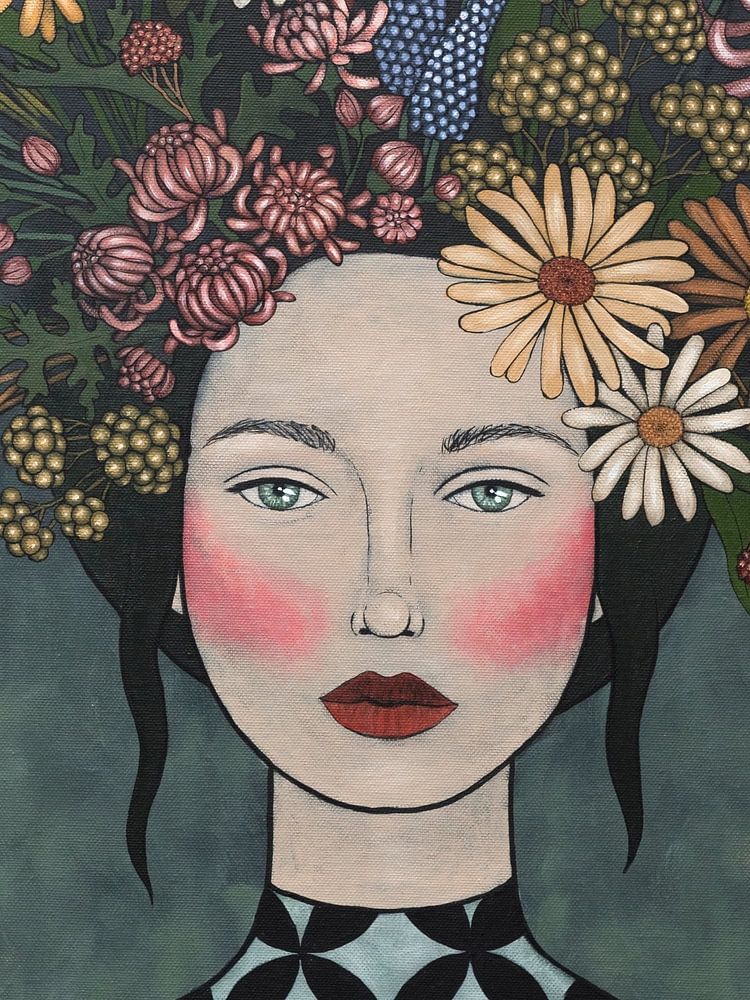 Das Originalwerk wurde mit Acrylfarbe auf einer 60 x 80 cm großen Leinwand angefertigt, aber jetzt zum Verkauf und ebenso schön auf anderen Materialien und Formaten! Teil einer wachsenden Serie von Werken unter dem Namen ''Flowers on my mind''. Diese sind entstanden, weil Kris einfach Lust hatte, Blumen zu malen. Sie kamen ihr immer wieder in den Sinn und mussten aus.... werden. In einer direkten, fröhlichen, surrealistischen Weise stellt sie die Frage: "Inwieweit bist du deine Gedanken? Wir gehen davon aus, dass wir das sind, was Sie denken. Aber sind wir das wirklich? Folgen Sie Kris Stuurop auf Instagram, um immer über neue Arbeiten informiert zu sein.