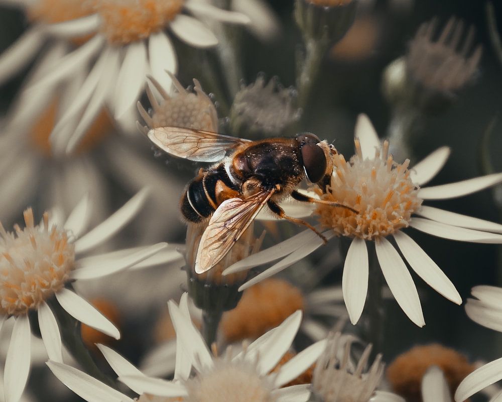 Ein echtes Sommergefühl mit gelben Blumen und fleißigen Bienen. Schöne weiche, warme Farben gewählt.
