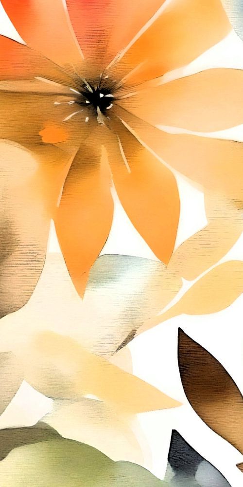 Ein Aquarell mit Blumen und Blättern in sanften Pastelltönen mit einem etwas ungewöhnlicheren, hauptsächlich vertikalen Seitenverhältnis. Erzeugt mit AI.
