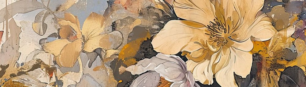 Florale - Diese stilisierte Blumenszene spielt mit organischen Formen und einer gedämpften Farbpalette, mit Andeutungen von sanftem Terrakotta und Buttergelb, die vor einem ruhigen, neutralen Hintergrund kontrastieren. Die subtile Textur und die Farbspritzer sorgen für einen raffinierten und doch erdigen Charme, so dass das Stück mühelos sowohl in die ländliche als auch in die moderne Ästhetik passt.