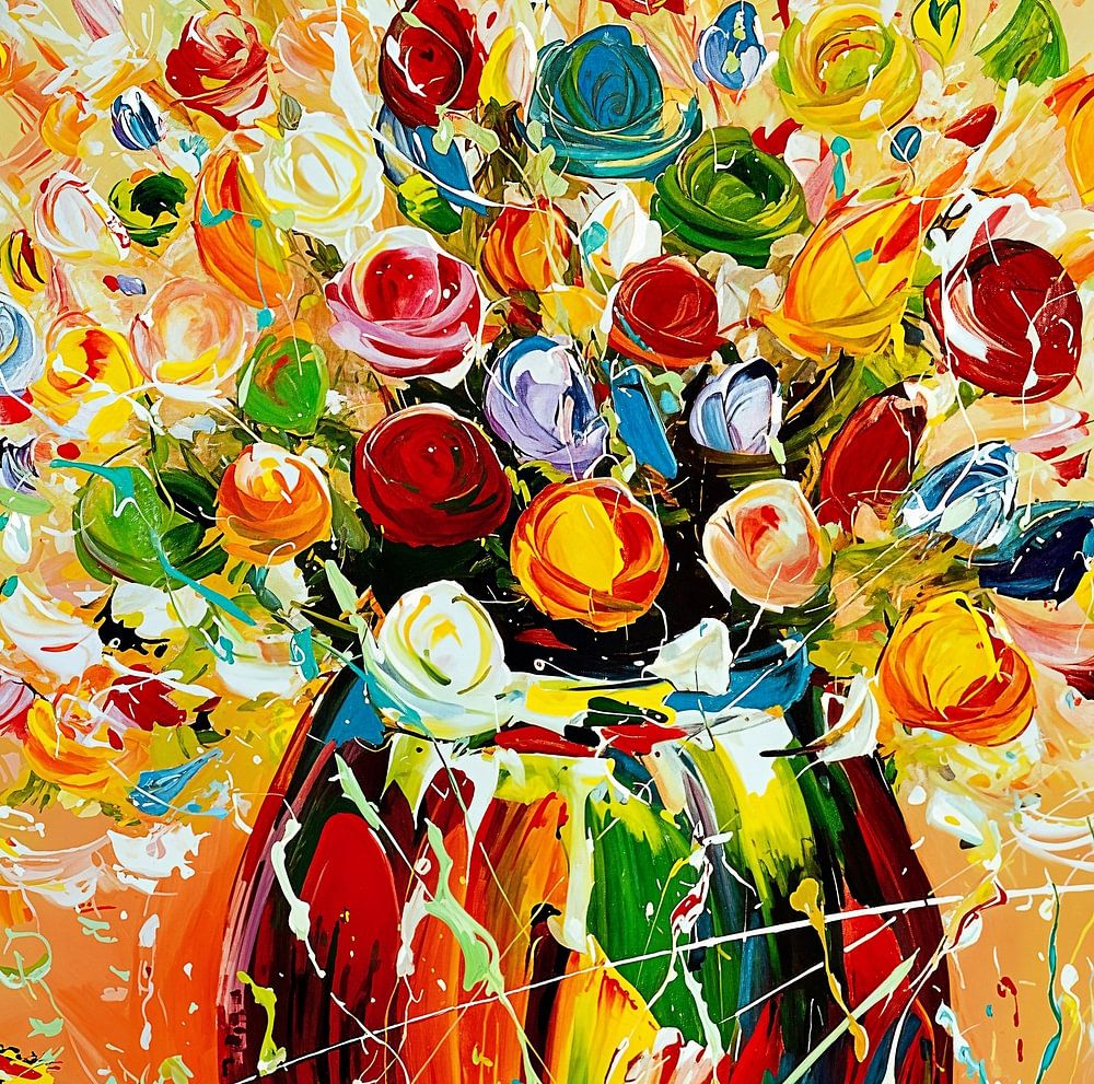 Bestelle dieses abstrakte Wandbild Blumen von Gena Theheartofart als Reproduktion auf Leinwand, Alu-Dibond, als Poster, Fototapete oder Acrylglasbild.