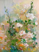 Die weißen Rosen haben einen Impasto-Malereieffekt.