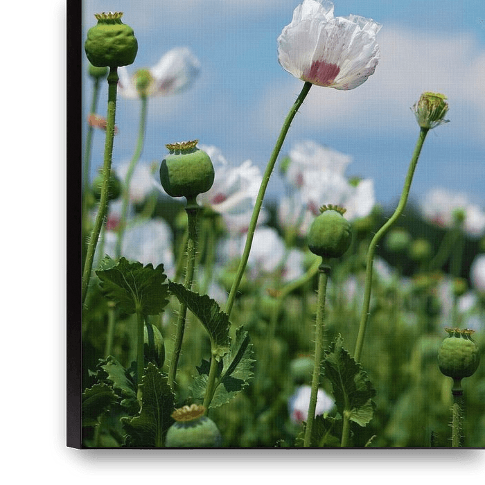 Bestelle dieses Blumen-Wandbild Blumenfeld, Papaver somneferum Mohnblume. von Sailographic Paula als Kunstdruck auf Leinwand, Alu-Dibond, als Poster, Fototapete oder Acrylglasbild.