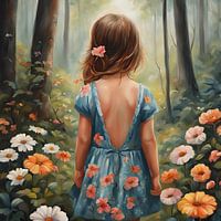 Bestelle diese Malerei Blumenmädchen im Wald Gemälde von ComfortQ als Reproduktion auf Leinwand, Alu-Dibond, als Poster, Fototapete oder Acrylglasbild.