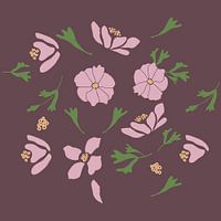 Einfache, halb abstrakte Blumenmotive in einer retro-inspirierten Farbpalette. Grafische Collage aus Blumenformen. Romantischer, böhmischer, Retro-, eklektischer, neuer ländlicher, skandinavischer Wohnstil.