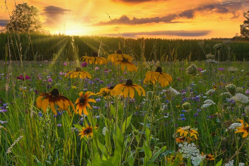 Blumenwiese und Bienenffutter an einem Sommerabend