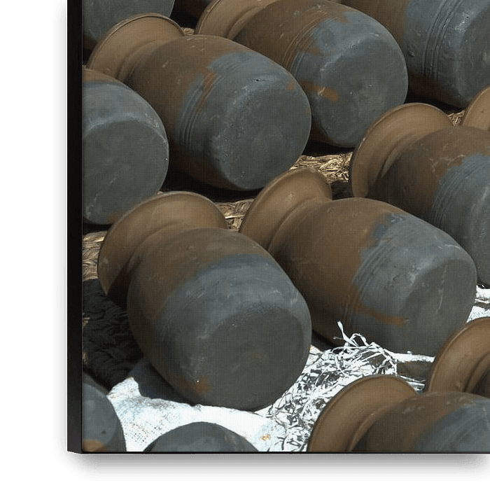 Über „Boden der TöpfeBhaktapur, Nepal: Töpferplatz. Symmetrische Reihen traditioneller Töpfe“ von Michael Semenov