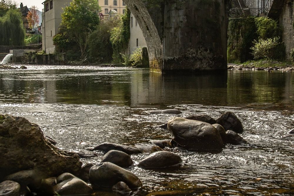 Das Wetter ist immer noch ruhig, so dass der Fluss jetzt recht ruhig ist und es möglich war, das Foto in seinem Bett zu machen. Die Felsbrocken im Vordergrund verleihen dem Foto Tiefe und man ist fast gezwungen, durch den Bogen zu schauen.