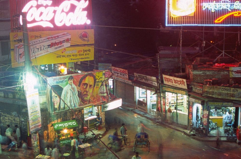 Bogra Bangladesch Neon-Werbedisplays 'bei Nacht. Analoges Foto