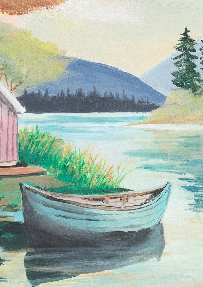 Bestelle diese Malerei Bootshaus Acrylmalerei von Studio Lof als Reproduktion auf Leinwand, Alu-Dibond, als Poster, Fototapete oder Acrylglasbild.