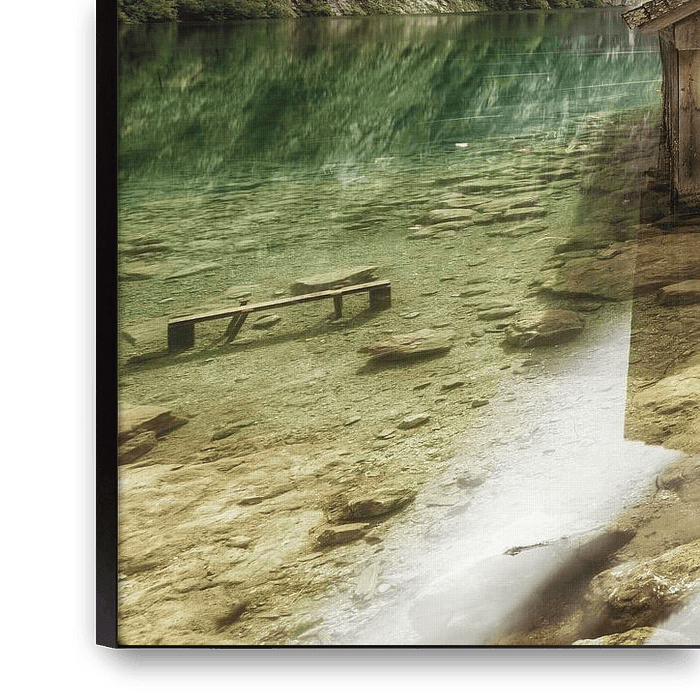 Bestelle dieses Landschafts-Wandbild Bootshaus am Königssee in Bayern von Voss Fine Art Fotografie als Reproduktion auf Leinwand, Alu-Dibond, als Poster, Fototapete oder Acrylglasbild.