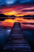 Bestelle dieses Landschafts-Wandbild Bootssteg vor einem bunten Himmel von Imperial Art House als Kunstdruck auf Leinwand, Alu-Dibond, als Poster, Fototapete oder Acrylglasbild.