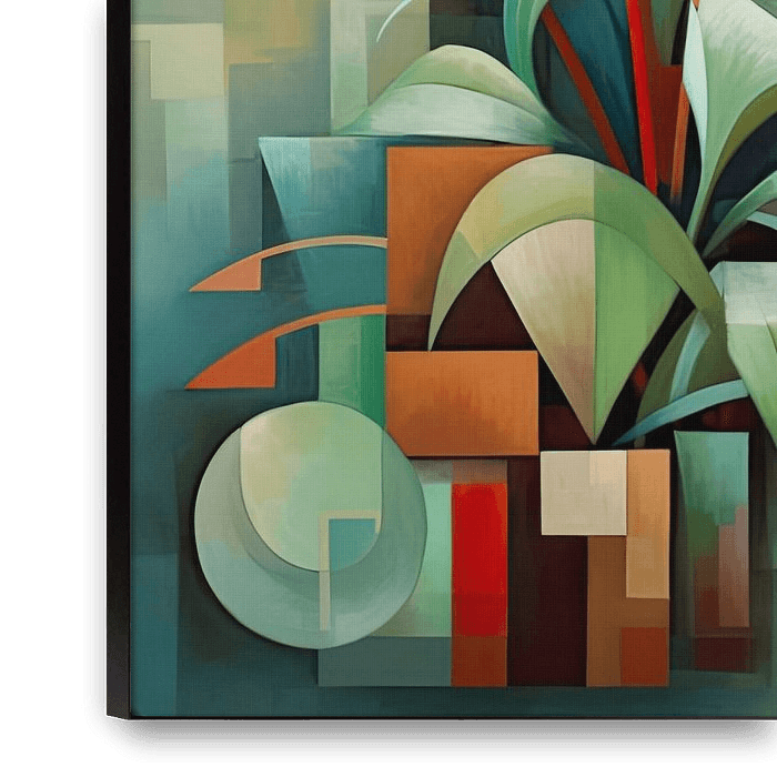 Bestelle dieses moderne Wandbild Botanische Abstraktion: Die Pflanze in kubistischem Glanz von Peter Balan als Reproduktion auf Leinwand, Alu-Dibond, als Poster, Fototapete oder Acrylglasbild.