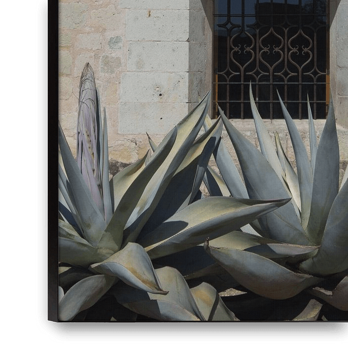 Dieses Foto habe ich während meiner Reise durch Mexiko in Oaxaca aufgenommen. Mit seinen Naturtönen und seiner botanischen Ausstrahlung passt dieser Druck perfekt an die Wand. Die Agavenpflanzen im Vordergrund sind typisch für Mexiko. Die beigefarbene Ziegelwand und die Grüntöne der Agave passen gut in die heutige Einrichtung.