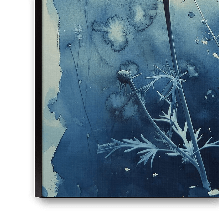 Botanische Collage, Kornblumen in Aquarell, blau. Digitale Kunst, basierend auf Cyanotypie. Wählen Sie Ihre eigene Größe und Material für diesen Blickfang.