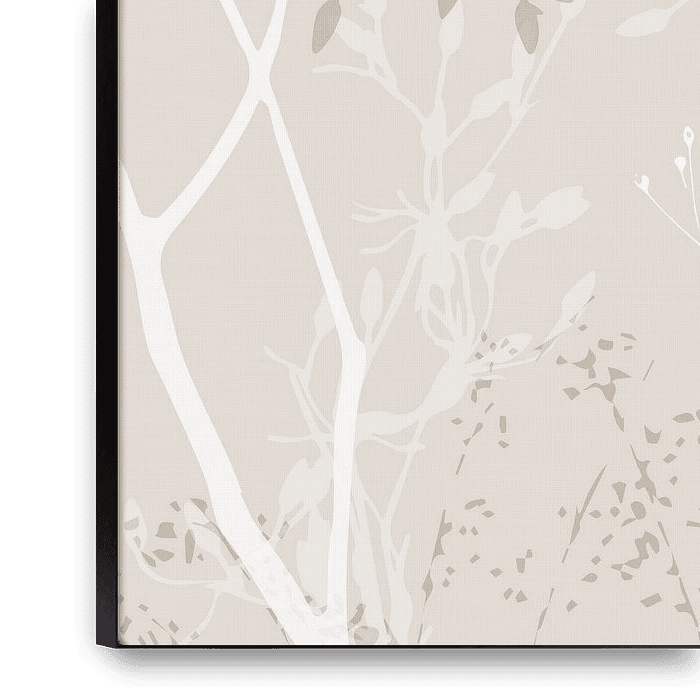 Von der Natur inspirierte zarte botanische Muster in neutralen Beigetönen. Perfekt für ein modernes Wohnzimmer, ein eklektisches Schlafzimmer oder Ihren kreativen Arbeitsbereich und sogar die Küche, ein toller Look für jede künstlerische Ecke im Interieur.