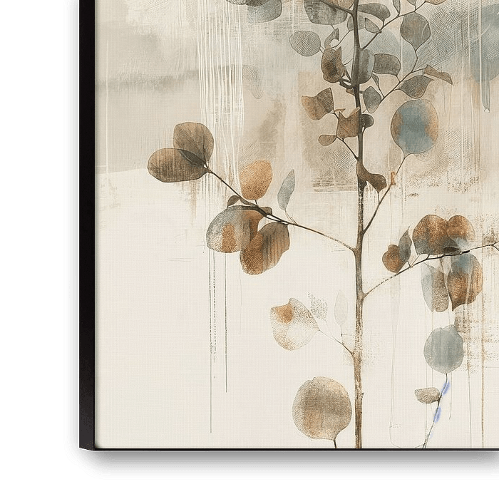 Botanischer Minimalismus, Wabi-Sabi und Japandi-Stil. Sanfte und neutrale Farben machen dieses Werk zu einem poetischen Spektakel. Wählen Sie die Größe und das Material selbst und passen Sie es an Ihr Interieur an.