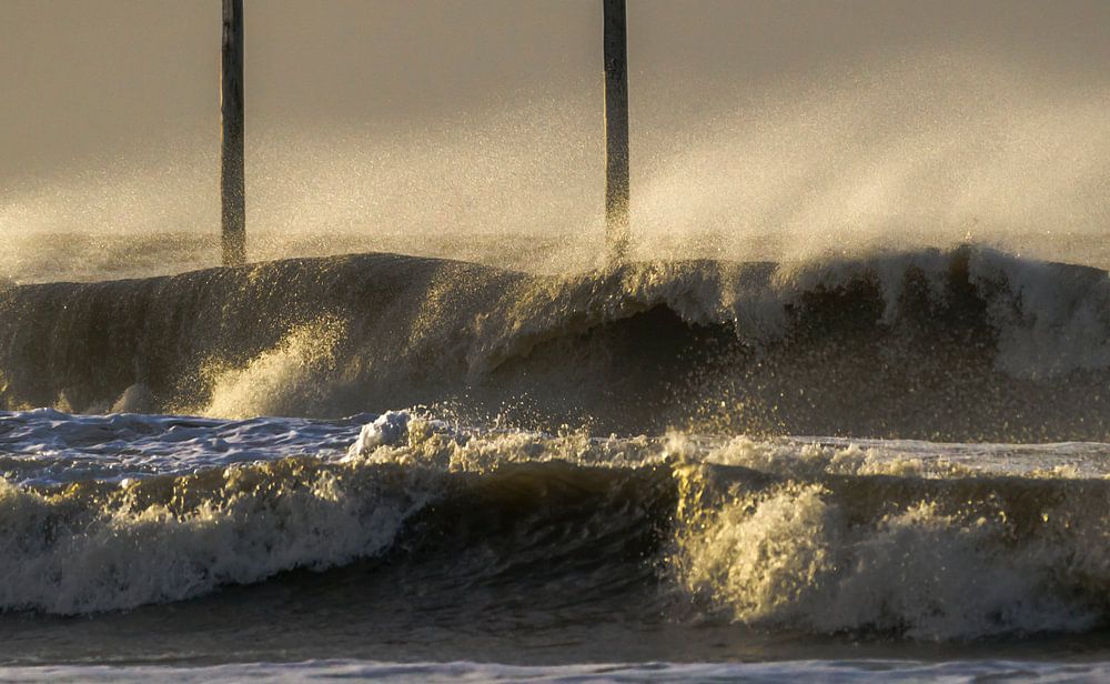 Wellen mit fliegender Gischt bei stürmischen Wetter.